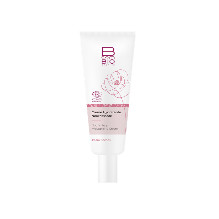 La crème hydratante nourrissante B com BIO est un soin visage spécialement conçu pour les peaux sèches. Elle est formulée à base d'acide hyaluronique aux propriétés hydratantes qui lisse et repulpe la peau, de cellules actives de Rose du désert qui augmentent la réserve de la peau en eau et favorisent l'hydratation dans toutes les couches épidermiques, de beurre de karité et d'huile de fleurs de mauve qui vont nourrir la peau en profondeur et à base de bisabolol végétal qui a une action apaisante. Cette crème nourrit en profondeur, hydrate la peau sur 48h, elle apaise et protège la peau et la laisse souple et pleine de douceur.