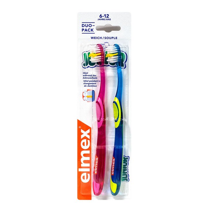 La brosse à dents junior Elmex 6-12 ans est utilisée pour un nettoyage efficace des dents mixtes grâce aux brins qui la composent disposés en X. Elle a une petite tête parfaitement adaptée à la bouche des enfants.