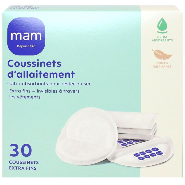 Les coussinets d’allaitement MAM jetables ont été conçus pour contribuer au bien-être des mamans pendant la période d’allaitement. À la fois respirant et souple, ils sont extra fins et s'adaptent parfaitement à votre anatomie tout en se faisant le plus discret possible. Lot de 30 coussinets.