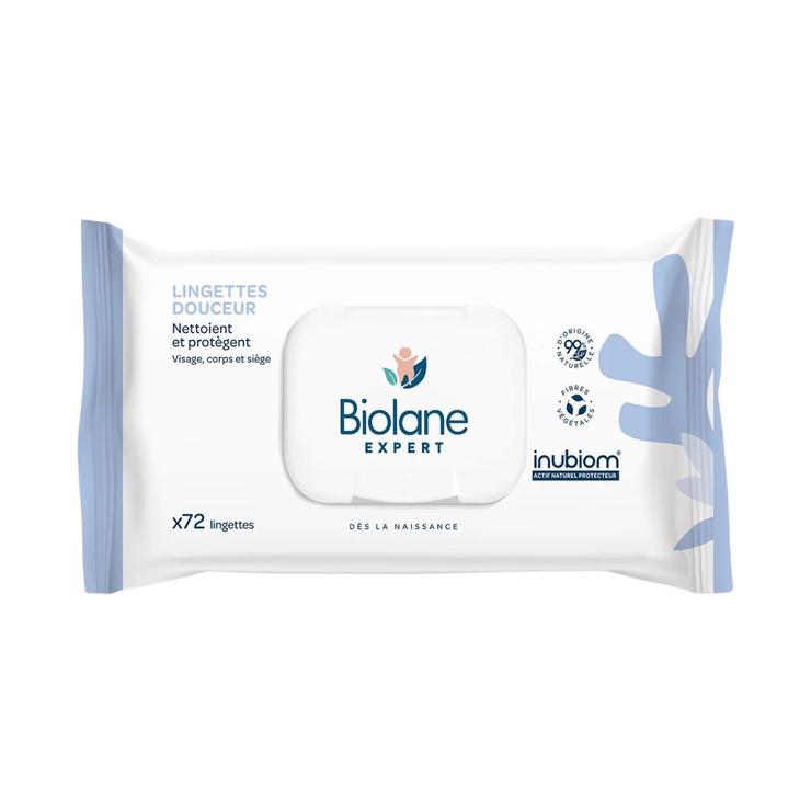 Les lingettes douceur constituent un soin nettoyant et protecteur recommandé pour les bébés dès la naissance. Elles sont formulées à base d’Inubiom, de fibres et d’un parfum très doux qui nettoient en douceur le visage, le corps et le siège, protègent la peau, préservent son équilibre naturel, participent à l’équilibre du microbiote cutané, renforcent et protègent la barrière cutanée, respectent les peaux les plus fragiles.