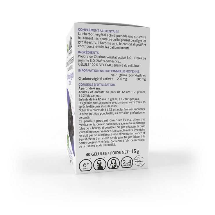 Ce complément alimentaire sous forme de gélules permet de piéger les gaz digestifs. Il favorise ainsi le confort digestif et contribue à réduire les ballonnements.