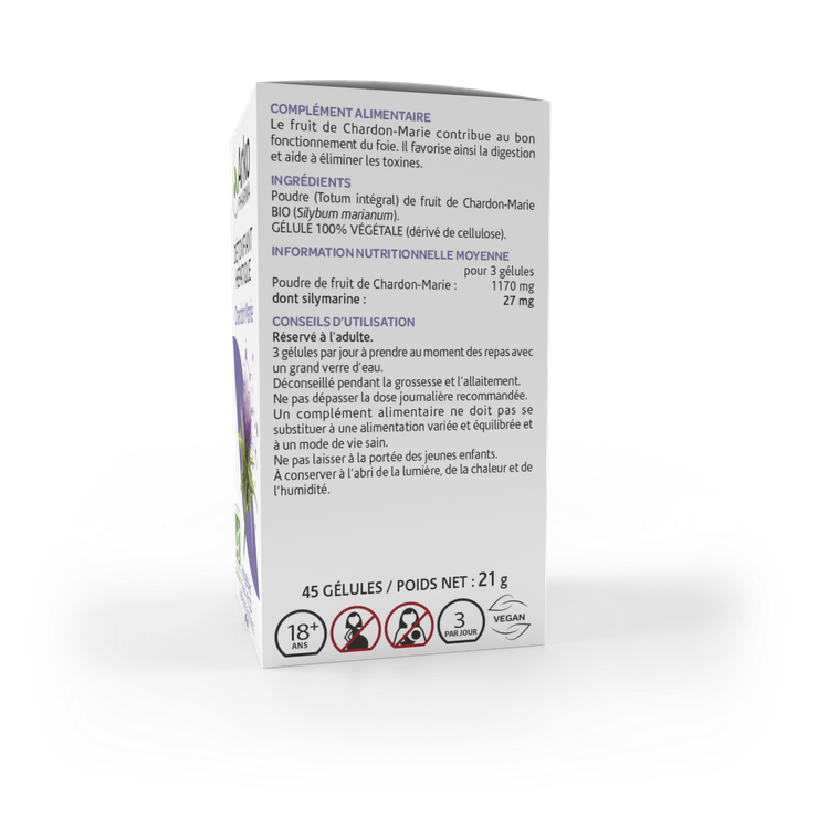 Idéal pour traiter les symptômes dus aux troubles de la digestion et au mauvais fonctionnement hépatique, Arkogélules Chardon Marie vous aidera à retrouver un confort digestif et permettra à votre foie de renforcer sa fonction hépatique.