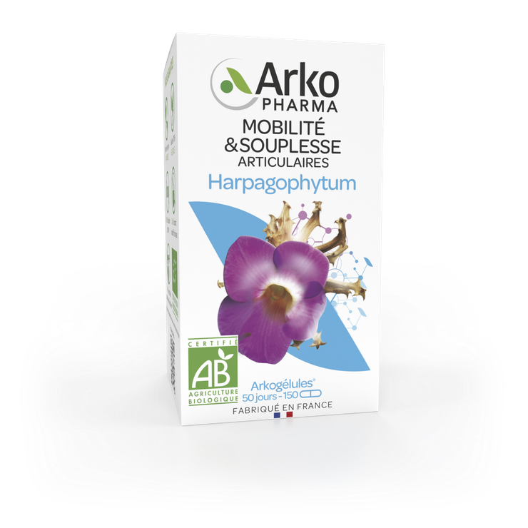 Les Arkogélules Harpagophytum bio Arkopharma constituent un complément alimentaire formulé à base d'Harpagophytum bio recommandé chez l'adulte et l'adolescent à partir de 15 ans pour favoriser la souplesse, le maintien et la flexibilité des articulations.