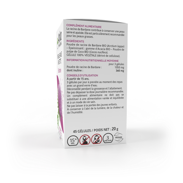 À partir de 15 ans. Prendre 3 gélules par jour au moment des repas avec un grand verre d'eau.