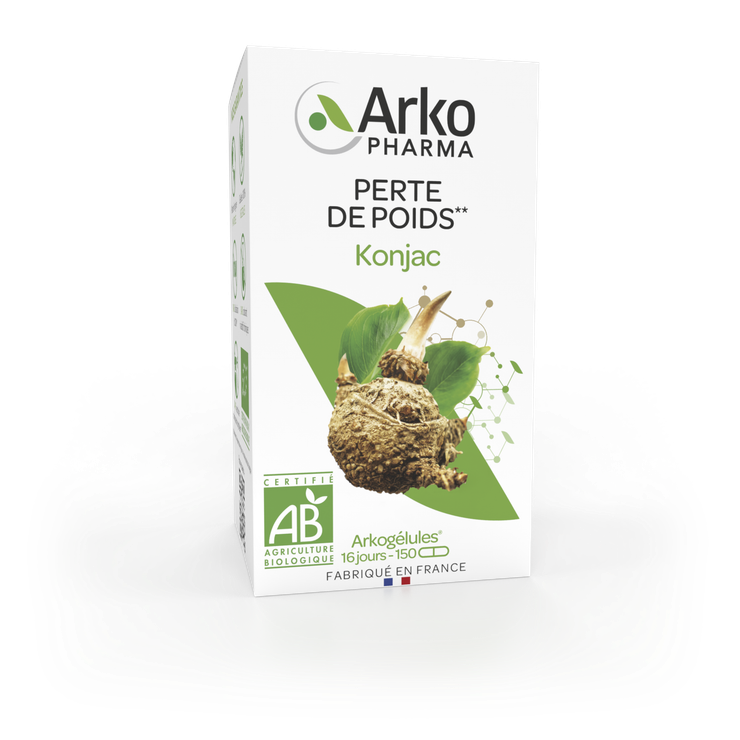 Les Arkogélules konjac Arkopharma constituent un complément alimentaire formulé à base de glucomannane qui aide à perdre du poids naturellement en se mélangeant aux aliments dans l'estomac et en absorbant l'eau. Agissant comme un coupe-faim et un brûle-graisse, le taux de sucre dans le sang diminue et la glycémie est stabilisée. Favorisant le transit intestinal, il contribue aussi à garder un taux de cholestérol normal.