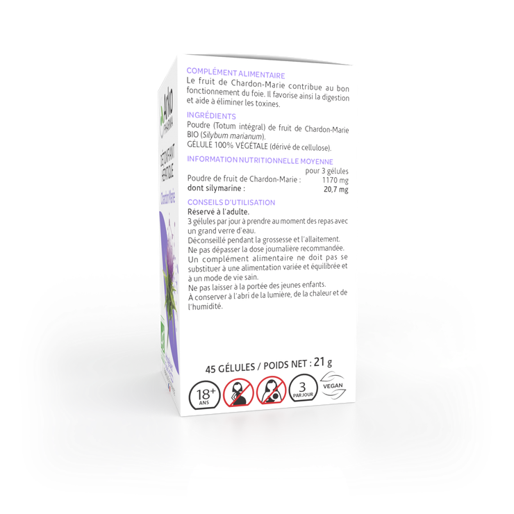 Prendre une gélule matin, midi et soir avec un grand verre d'eau au moment des repas. Il est recommandé de boire beaucoup d'eau pendant la période d'utilisation. En cas de diabète, de maladies de l'intestin ou du colon, demander conseil à votre médecin. Espacer la prise de toute autre médication d'au moins 1h. Réservé à l'adulte. Un complément alimentaire ne doit pas se substituer à une alimentation variée et équilibrée et un mode de vie sain. À conserver à l'abri de la lumière, de la chaleur et de l'humidité.