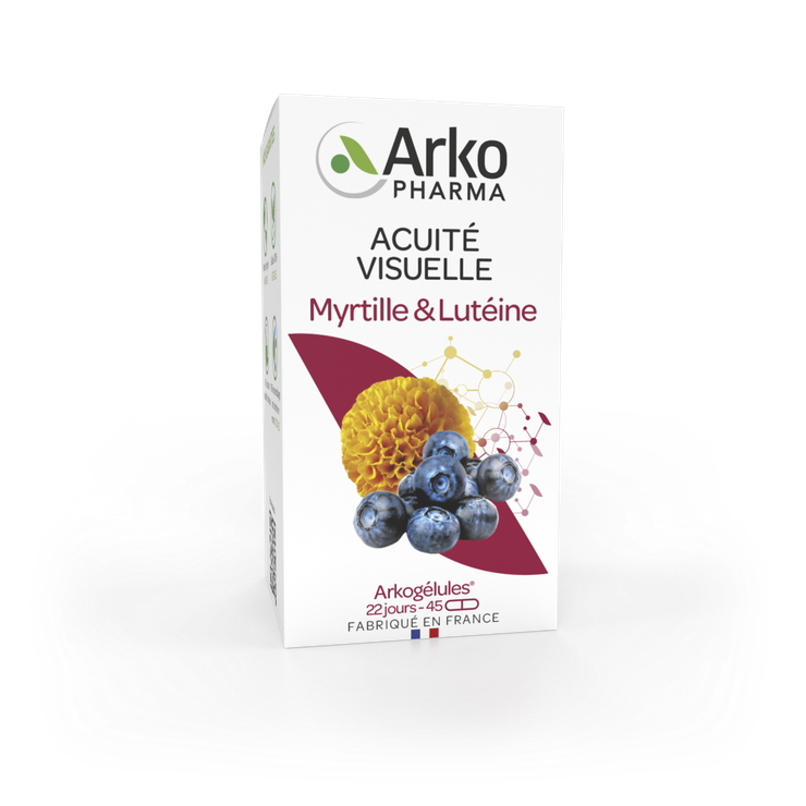 Les capsules Arkogélules myrtille et lutéine Arkopharma constituent un complément alimentaire formulé à base de myrtille et de lutéine recommandé chez l'adulte pour le maintien de l'acuité visuelle et le confort visuel.