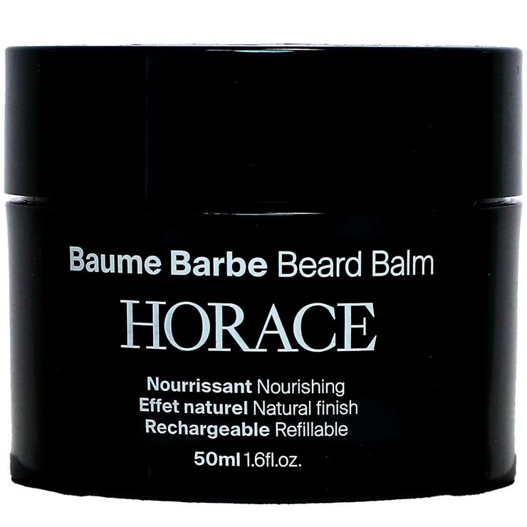 Le baume à barbe nourrissant rechargeable Horace est un soin pour homme qui nourrit, structure et embellit la barbe au quotidien. Il est formulé à base de beurre de karité aux propriétés nourrissantes et adoucissantes, d'huile de ricin et d'huile d'argan aux propriétés régénératives qui apportent souplesse et brillance et à base de cires d'abeille et de candelilla qui vont fixer la barbe.