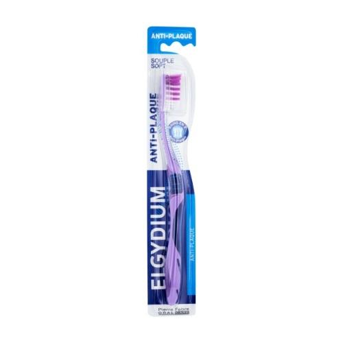 La brosse à dents anti-plaque Elgydium permet l'élimination de la plaque dentaire avec une efficacité supérieure de 30% par rapport à une brosse à dents classique grâce à l'implantation innovante croisée des brins extérieurs.
