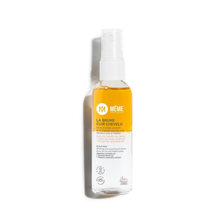 La brume pour le cuir chevelu constitue un soin apaisant et nourrissant recommandé pour les cuirs chevelus sensibles et fragilisés, notamment en cas de traitements anticancéreux ou de port de perruque. Elle est formulée à base de texture bi-phasée aqueuse et huileuse, de format spray léger, de fini non gras qui soulagent immédiatement le cuir chevelu, hydratent et nourrissent la peau, aident à lutter contre les irritations et le dessèchement, apportent une sensation de fraîcheur, peuvent favoriser la microcirculation lors du massage.