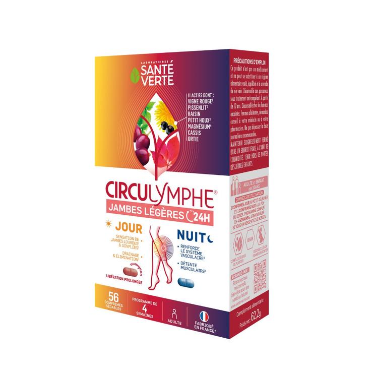 Adultes et enfants (dès 10 ans). Posologie de Circulymphe Jambes légères Jour Nuit : Prendre 1 comprimé Jour au moment du petit-déjeuner et 1 comprimé Nuit à la fin du dîner. Programme complet de 4 semaines, à renouveler si nécessaire.