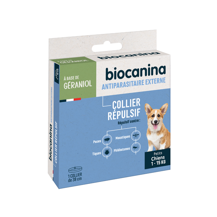Ajuster le collier autour du cou de l’animal en laissant le passage de deux doigts, l’ôter pour couper la partie non utilisée, puis fixer le collier autour du cou. Changer le collier tous les 3 mois environ. Actif même dans l’eau.
