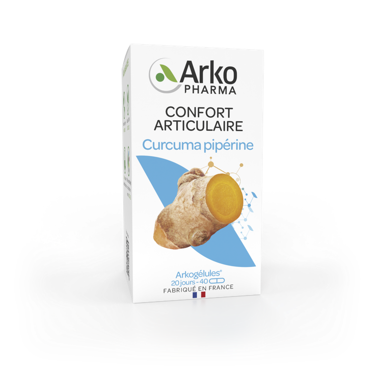 Les Arkogélules curcuma pipérine Arkopharma constituent un complément alimentaire recommandé pour un bon fonctionnement du système articulaire grâce à l'action du curcuma qui favorise le maintien de la flexibilité et du confort articulaires. Le curcuma et le poivre noir qui augmente son absorption sont également reconnus pour leurs vertus antioxydantes.