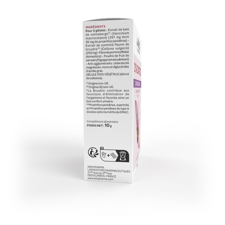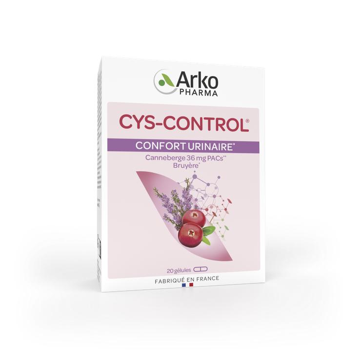 Les gélules Cys-control confort urinaire Arkopharma constituent un complément alimentaire recommandé pour traiter les infections urinaires telles que les cystites et prévenir leur réapparition grâce à l'action des proanthocyanidines de type A (PAC A), dosées selon la méthode DMAC, qui contribuent à diminuer la fixation de certaines bactéries E.coli sur les parois des voies urinaires.