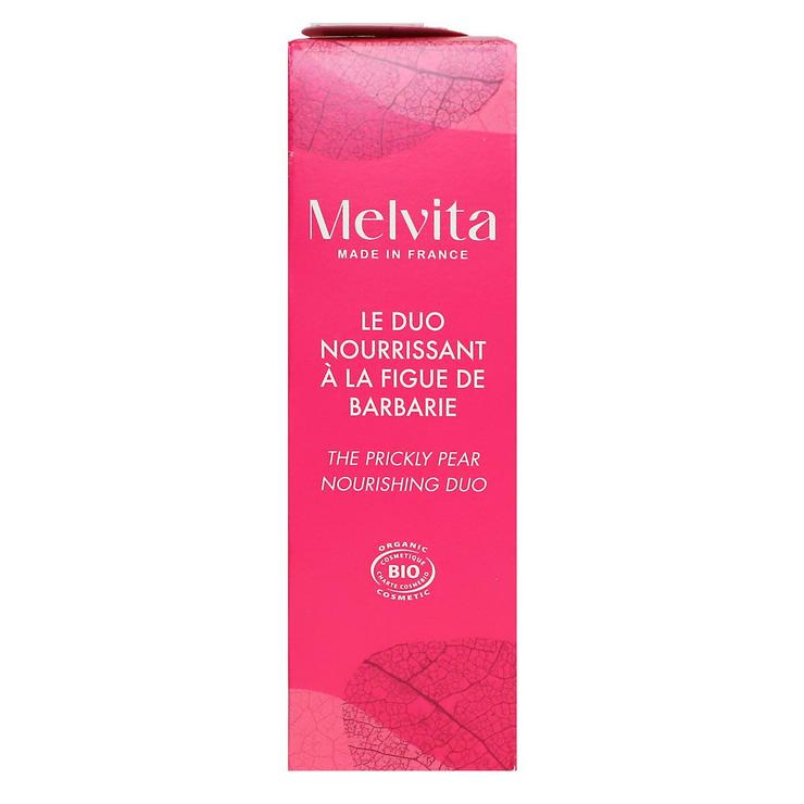 Melvita propose ce duo enrichi en huile de figue de barbarie, reconnue pour ses propriétés hydratantes et adoucissantes. Le coffret est composé du baume à lèvres nourrissant à la figue de barbarie bio 4.5g et de la crème mains nourrissante à la figue de barbarie bio 30ml.