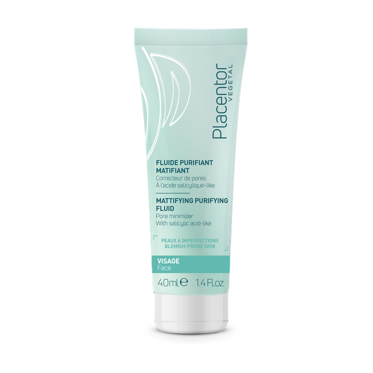 Le fluide purifiant matifiant Placentor Végétal est un soin visage spécialement conçu pour les peaux à imperfections. Il est formulé à base d'acide salicylique-like et il corrige les pores, lisse et affine le grain de peau, il réduit les imperfections avec un effet visible dès 7 jours et il prévient également les récidives.
