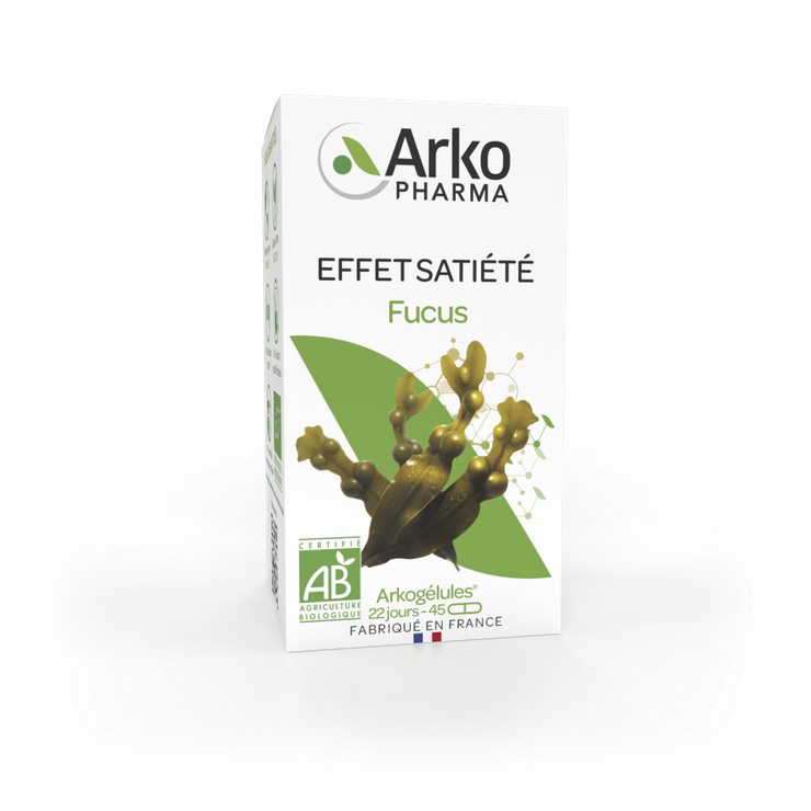 Les capsules Fucus effet satiété bio Arkopharma constituent un complément alimentaire recommandé en cas de régime minceur. Elles sont formulées à base de fucus bio qui permet de limiter les apports en calories grâce à son effet de satiété.