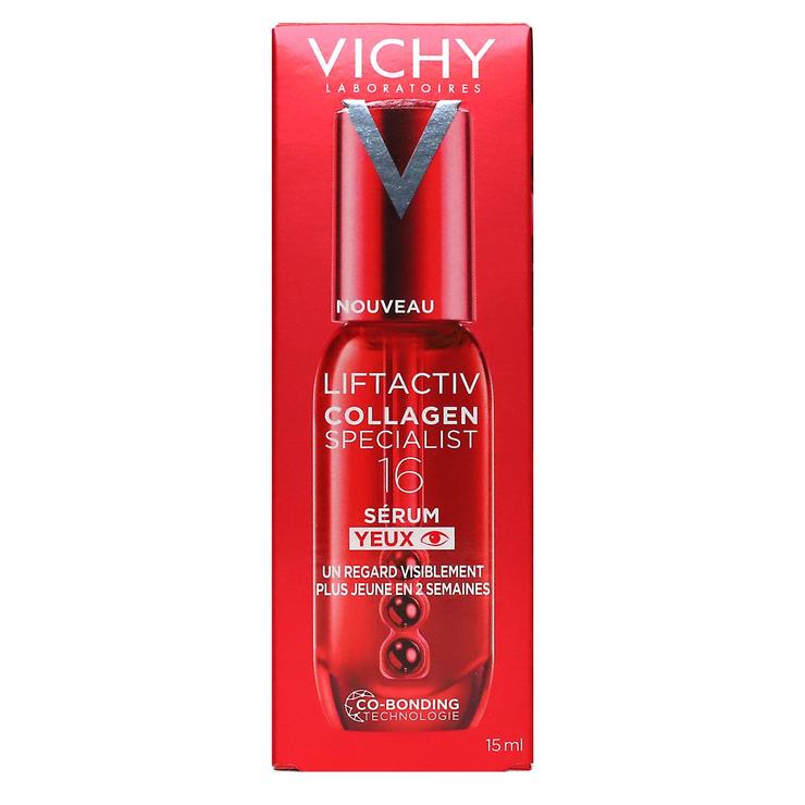 Le sérum yeux LiftActiv Specialist Booster de collagène constitue un soin anti-âge recommandé pour les adultes. Il est formulé à base de rhamnose, de peptides, d’extrait de maitake, d’acide hyaluronique, de caféine, de vitamine C, d’eau volcanique de Vichy qui lissent les rides et ridules, stimulent la production de collagène, hydratent intensément le contour des yeux, réduisent les poches et les cernes, unifient et illuminent le regard, protègent la peau fragile du contour de l’œil, atténuent les signes de fatigue et de relâchement cutané.