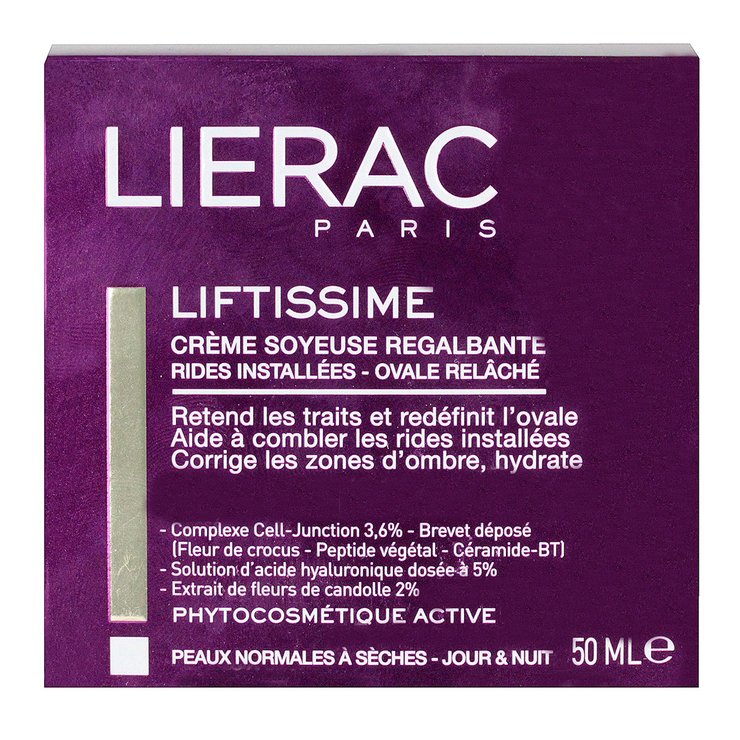 Liftissime crème soyeuse regalbante Lierac est un soin destiné aux peaux matures, normales à sèches. Ce soin hydratant est utilisé pour retendre les traits et redéfinir l'ovale relâché du visage. Appliquée de jour comme de nuit, Il comble les rides installées, hydrate et corrige les zones d'ombre du visage. La peau est immédiatement retendue et regalbée. Les volumes sont rééquilibrés et les rides comblées.