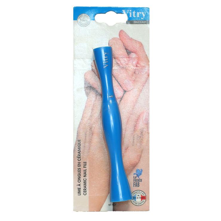 La lime à ongles en céramique Vitry est un accessoire élégant et pratique doté d’un étui-capuchon qui permet un rangement vertical dans la salle de bain et un transport facile dans un sac à main, tandis que sa pierre céramique inaltérable, lavable et non poreuse assure un limage précis, hygiénique et durable pour façonner les ongles selon vos envies, arrondis, carrés ou ovales.