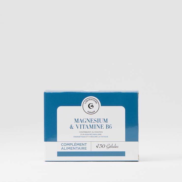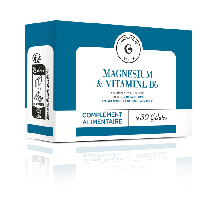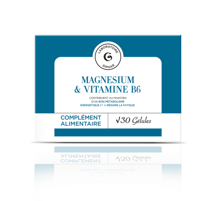 Le complément alimentaire Magnésium & Vitamine B6 du Laboratoire Giphar est à base de magnésium d'origine marine et de vitamine B6.