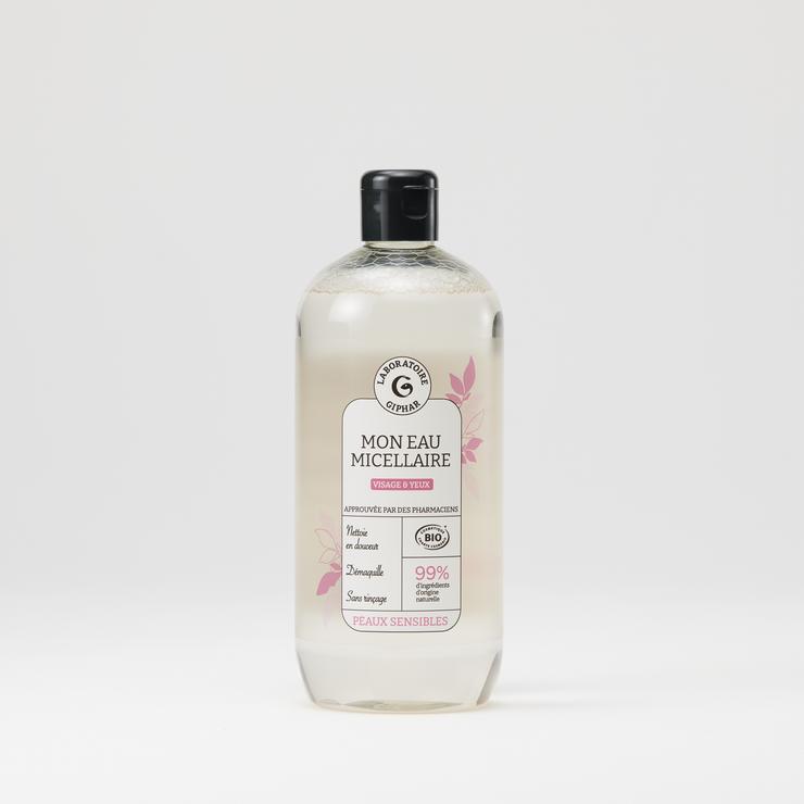 L'eau micellaire sans rinçage qui démaquille et nettoie en douceur ma peau.-