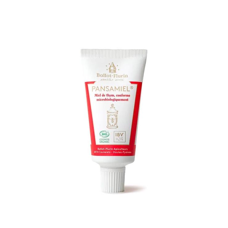 Le Pansamiel Miel de Thym Bio constitue un soin cutané naturel et cicatrisant recommandé pour toute la famille, en cas de petites plaies, brûlures ou irritations.