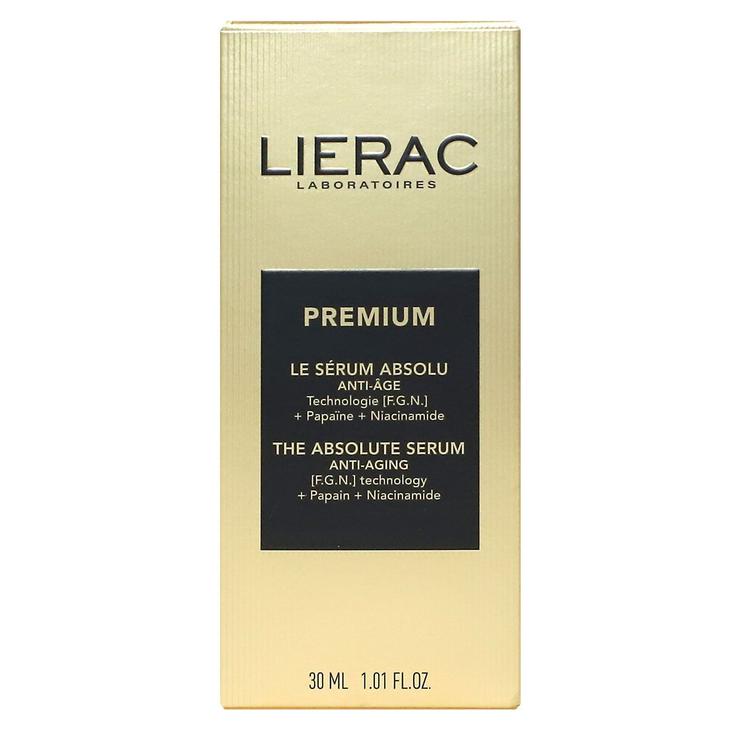 Le Sérum Absolu Lierac Premium est un soin anti-âge global conçu pour tous les types de peaux, même les plus sensibles. Véritable concentré de technologie, il agit sur l’ensemble des signes du vieillissement cutané tels que les rides, les taches, la perte de fermeté, d’élasticité, de densité ou d’éclat et la déshydratation grâce à la technologie brevetée [F.G.N.] qui cible les cellules clés du vieillissement. Enrichi en papaïne, une enzyme naturelle qui exfolie en douceur pour lisser et illuminer le teint et en niacinamide, reconnue pour atténuer les taches et régénérer la peau, ce sérum améliore visiblement la texture et la luminosité du visage. Sa double texture innovante aux 7300 micro-billes associe la fraîcheur de l’eau au confort de l’huile, tandis que son parfum floral aux notes de jasmin, de rose et d’ylang-ylang procure une expérience sensorielle raffinée. Jour après jour, la peau paraît plus lisse, ferme, uniforme et éclatante de jeunesse.