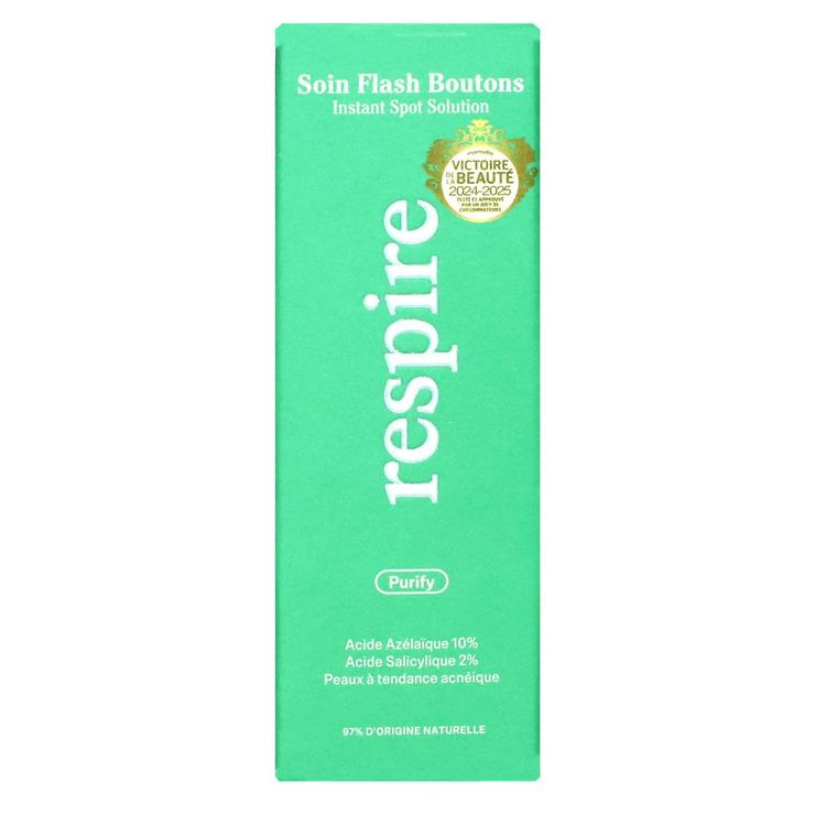 Le soin flash bouton Respire est destiné aux peaux présentant des boutons et imperfections. Il permet de réduire les boutons, de prévenir leur apparition et d'atténuer les marques pour une peau éclatante.