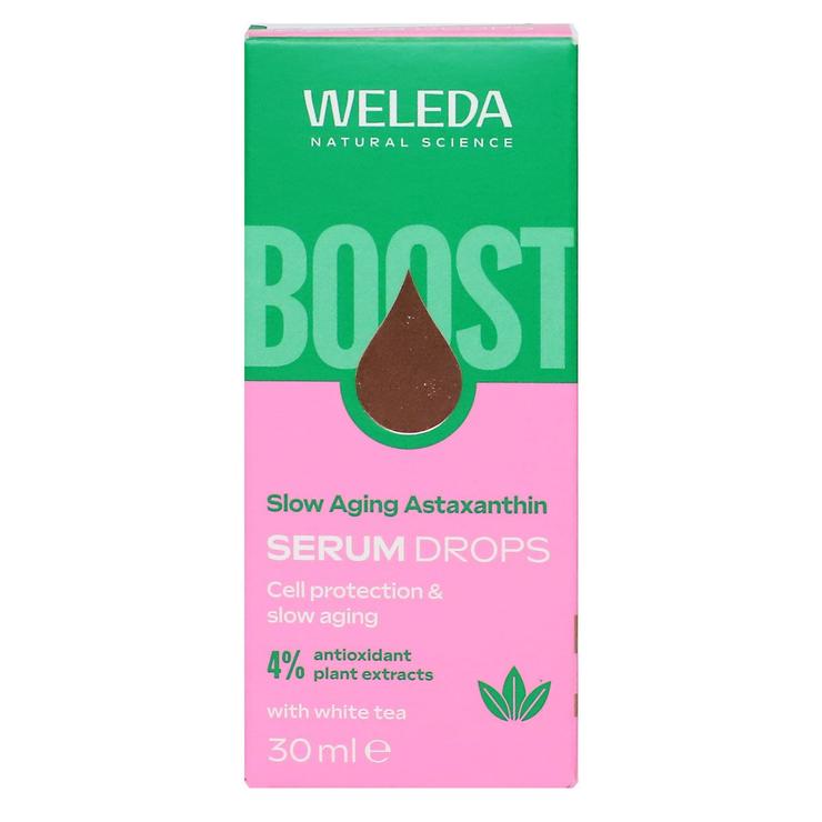 Weleda Slow Aging Astaxanthin Serum Drops est un sérum anti-âge qui convient à tous types de peaux. Enrichi en thé blanc et en extraits de plantes, il protège les cellules cutanées du stress oxydatif lié aux agressions extérieures telles que les rayons UV, la lumière bleue, le tabac ou encore la pollution afin de prévenir le vieillissement de la peau. Sa formule en gouttes s'utilise seule ou mélangée à une crème hydratante.