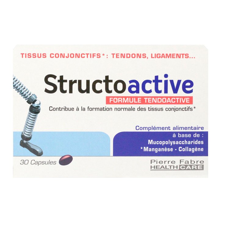 Structoactive est un complément alimentaire à base de collagène de type I, mucopolysaccharides, manganèse, qui contribue à la formation normale des tissus conjonctifs. Les tendons faisant partie des tissus conjonctifs situés au niveau des articulations, ont un rôle fondamental lors du mouvement par leurs fonctions de liaison et de soutien, le manganèse peut aider à leur formation normale.