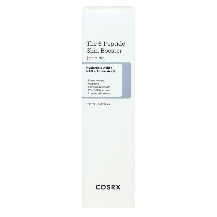 The 6 Peptide Skin Booster de Cosrx est un sérum multifonctionnel conçu pour améliorer visiblement l’état général de la peau. Enrichi d’un complexe puissant de six peptides, il stimule l’élasticité, affine la texture cutanée et aide à traiter efficacement les pores. Ce sérum léger et non collant est idéal pour lutter contre l’excès de sébum, les ridules, les irrégularités du teint et de la texture. Il prévient la déshydratation et le teint terne tout en offrant des effets anti-âge. Sa formule aide à réduire la sensibilité de la peau, la raffermit et illumine le teint. Adapté à tous les types de peaux, il peut être utilisé en toute saison sans laisser de film collant.
