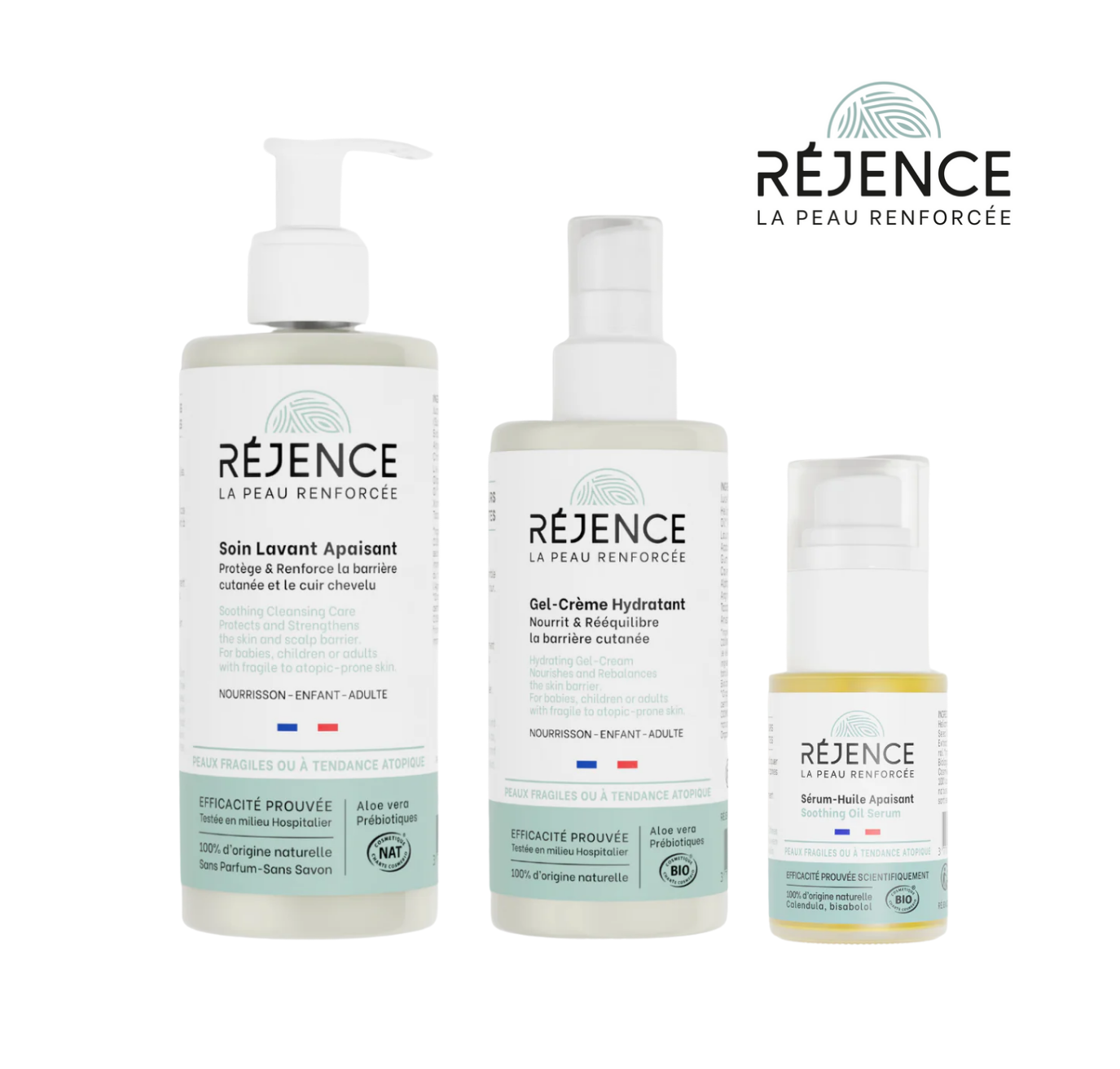 Réjence accompagne les peaux atopiques dès la naissance avec des soins ultra-doux, 100 % naturels, sans eau de dilution et sans ingrédients controversés. Pensée pour réduire les crises et restaurer la barrière cutanée, la gamme allie efficacité et respect de la peau.