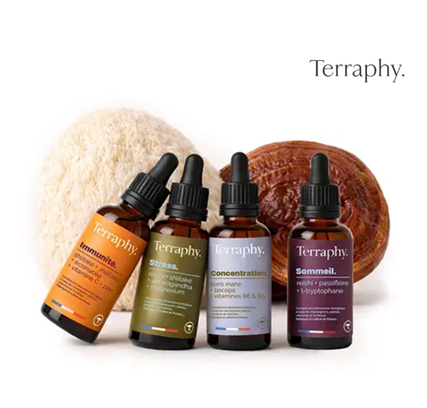 Terraphy naît de l’envie de mêler science et tradition pour créer des cures liquides uniques, concentrées en champignons adaptogènes, plantes, vitamines et minéraux. Un millilitre par jour suffit pour ressentir leurs bienfaits et soutenir votre équilibre. Pensées pour accompagner chacun dans son quotidien, ces cures apaisent le stress, favorisent le sommeil, stimulent la concentration et soutiennent l’immunité, tout en accompagnant les femmes durant la ménopause. Avec Terraphy, la routine bien-être devient simple, efficace et naturelle.