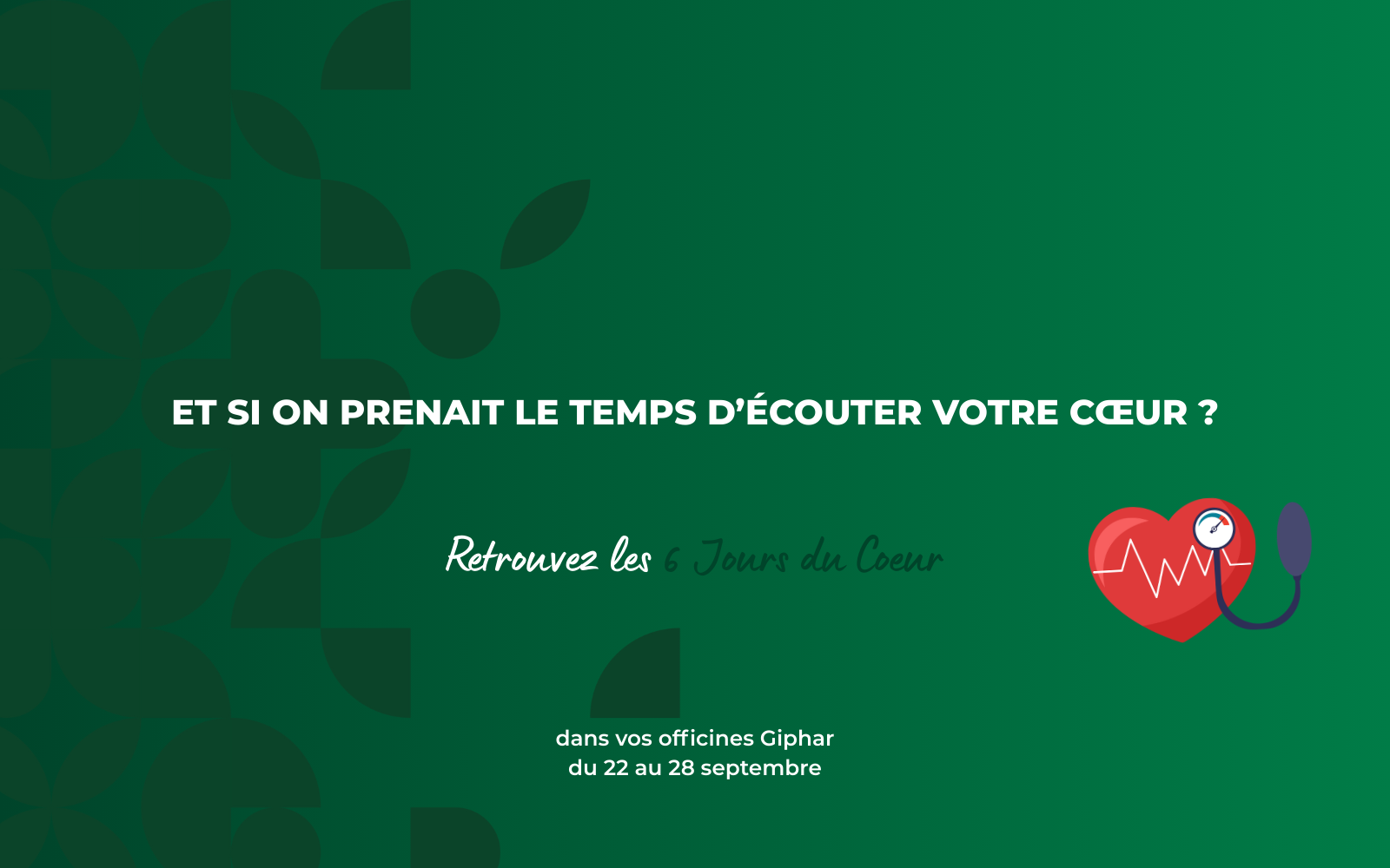 Du 22 au 28 septembre, dans le cadre de la campagne des 6 jours du Cœur, le dépistage vous est offert par votre pharmacien Giphar !